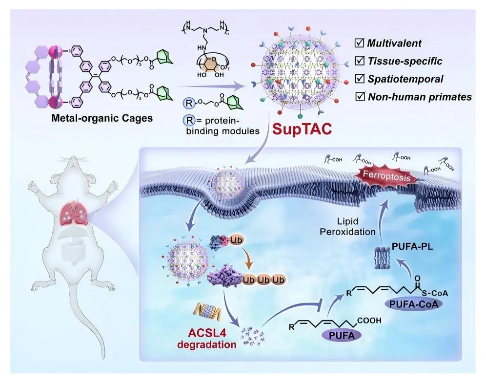 SupTAC技术在疾病治疗领域展示出广阔前景。通过特异性降解致病蛋白,它为多种难治性疾病的治疗提供了新思路。在急性肺损伤模型中,肺部特异性降解ACSL4能有效抑制肺部细胞的铁死亡,这为炎症性肺病的治疗提供了新策略。除了治疗应用,SupTAC还为疾病机制解析和创新药物靶点发现提供了强大工具。