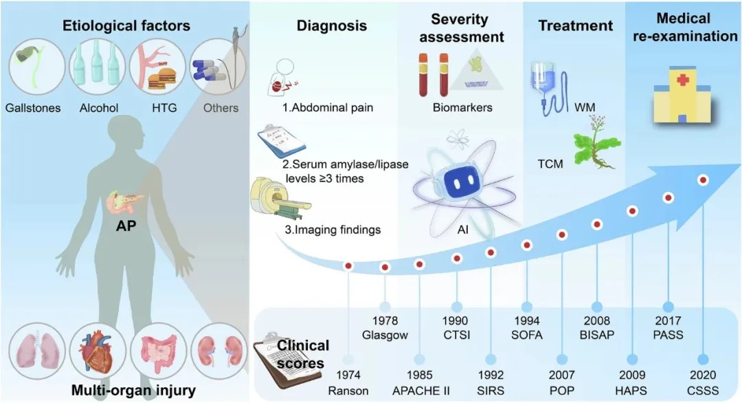 | 导读 | 文章强调,通过人工智能预测模型、多器官互作机制解析及纳米技术等新兴疗法,急性胰腺炎的精准防治策略正迎来突破性进展。 |