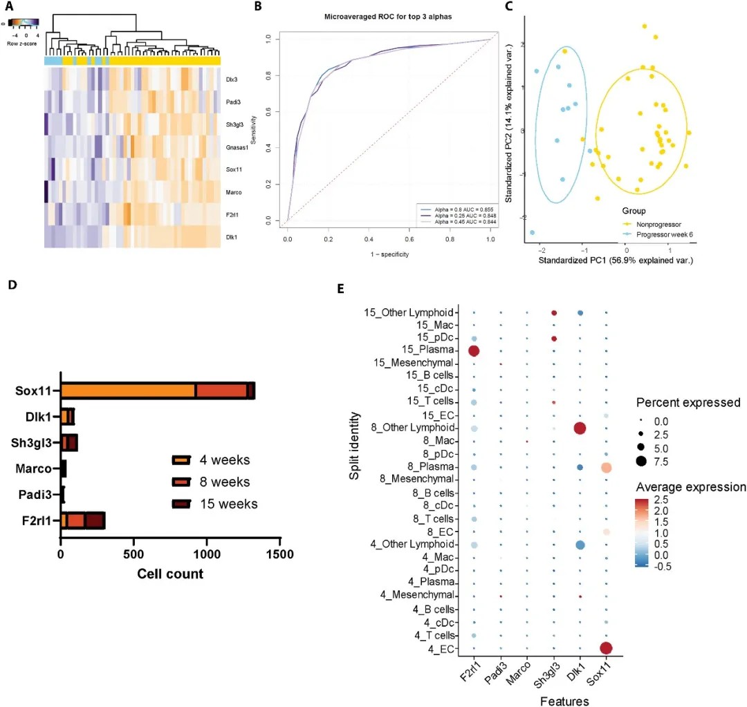 6周时确定的基因特征可应用于非进展小鼠的所有时间点,并与胰腺内的变化相关