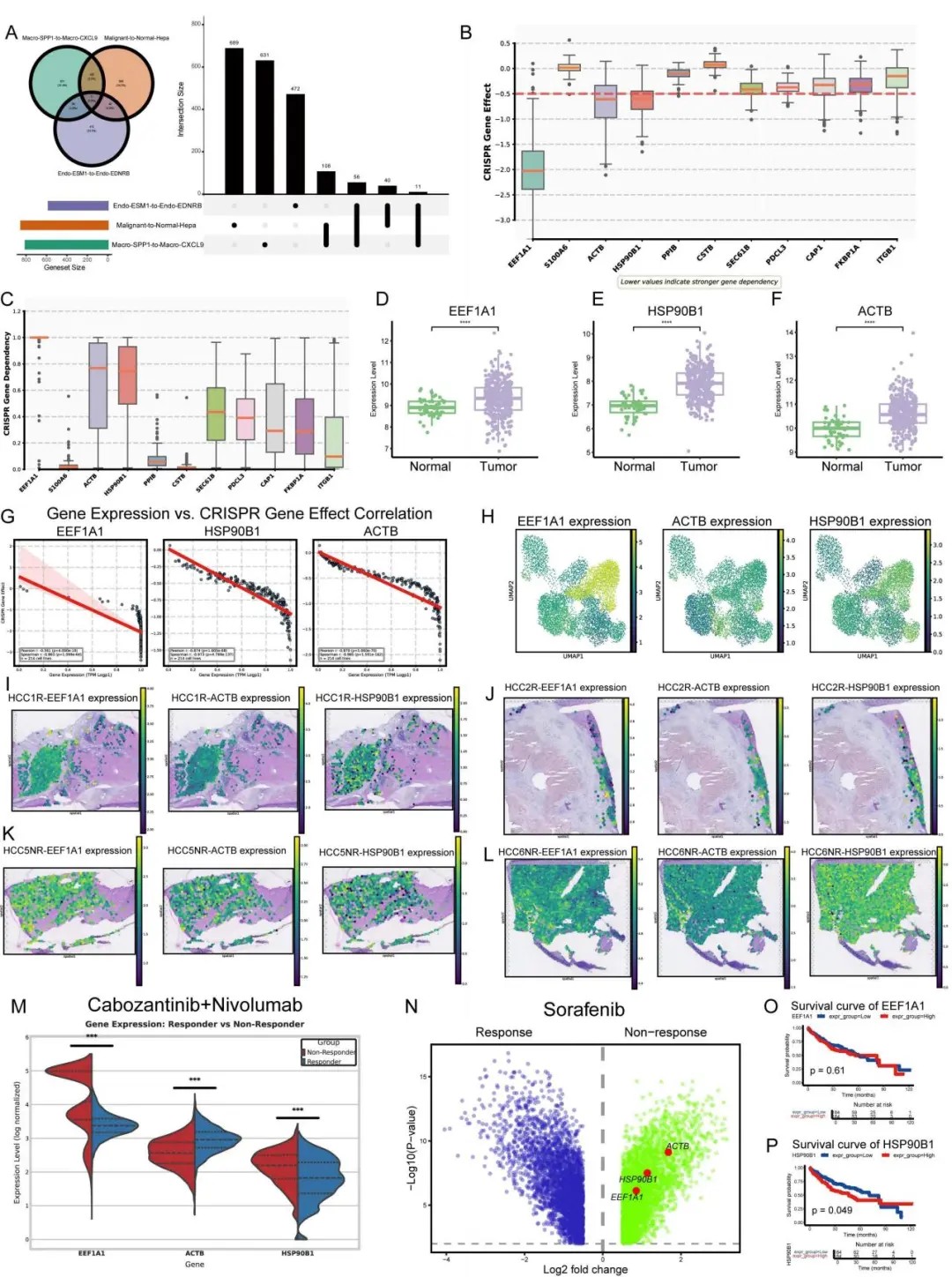 团队利用Geneformer模型进行虚拟基因敲除实验,发现内质网分子伴侣HSP90B1在巨噬细胞重编程、肝癌细胞去恶变和内皮细胞正常化过程中均发挥核心作用。临床验证显示,HSP90B1在索拉非尼及卡博替尼联合纳武利尤单抗耐药患者的肿瘤组织中广泛高表达,且其表达水平与患者总生存期缩短显著相关。