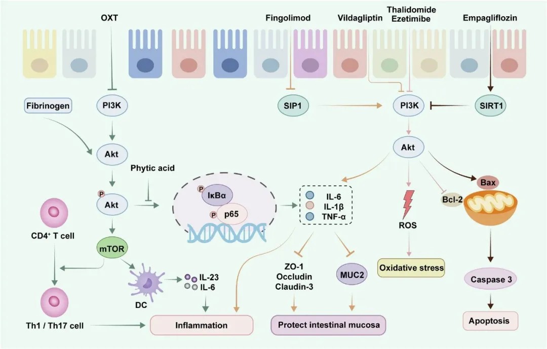 PI3K-AKT信号通路在UC中的关键靶点及其上下游介导机制