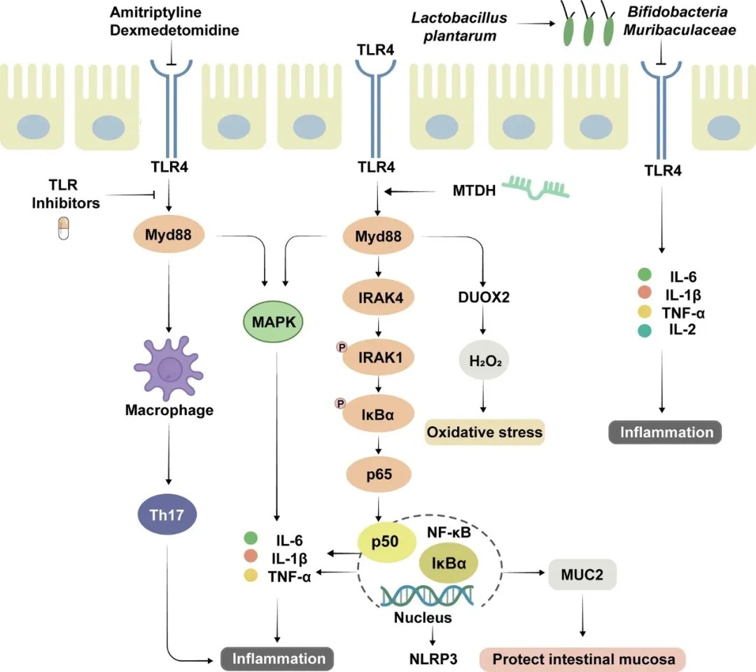 TLR信号通路在UC中的关键靶点及其上下游介导因子