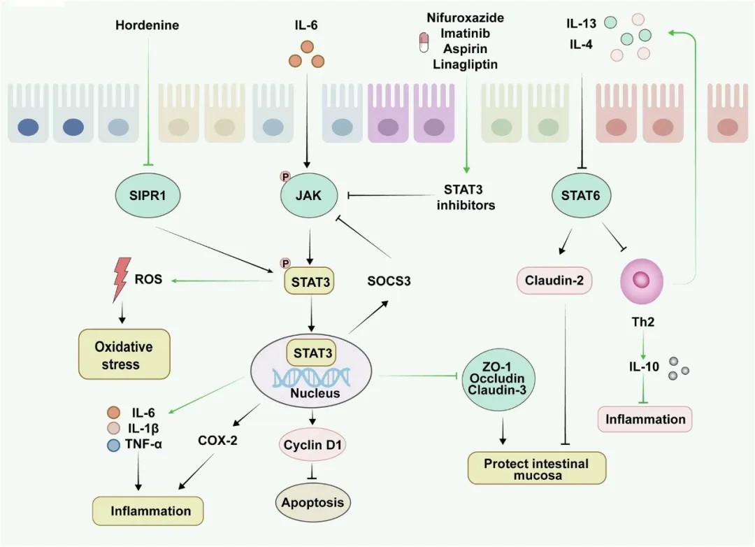 STAT信号通路在UC中的关键靶点及其上下游调控机制