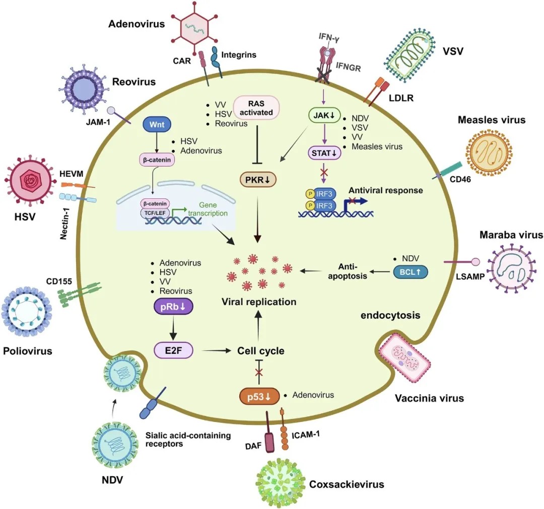 溶瘤病毒靶向癌细胞的通路、受体与作用机制
