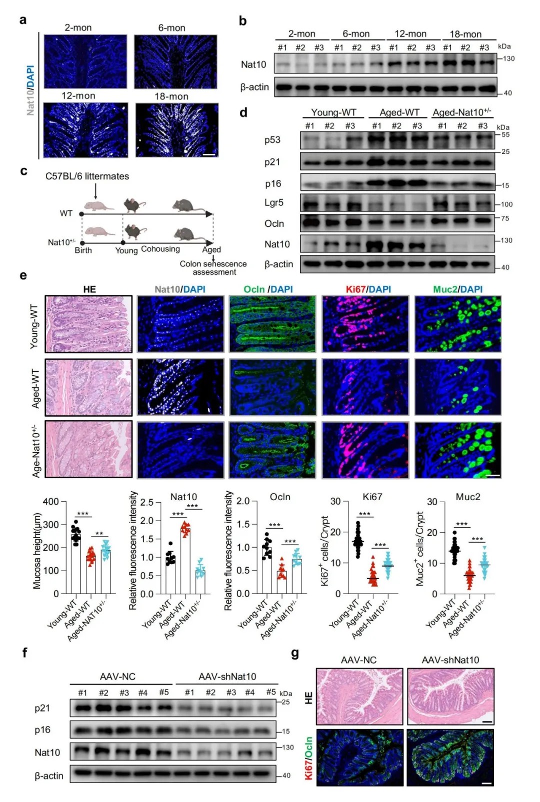 NAT10下调在老年结肠中保护上皮更新并减少衰老