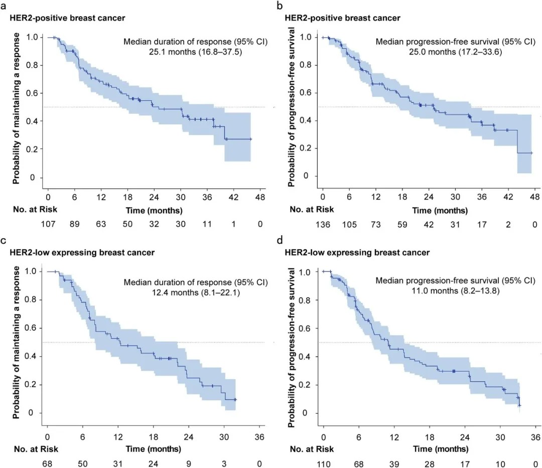 • 在HER2低表达乳腺癌患者中(n=110),中位无进展生存期为11.0个月,客观缓解率为61.8%。