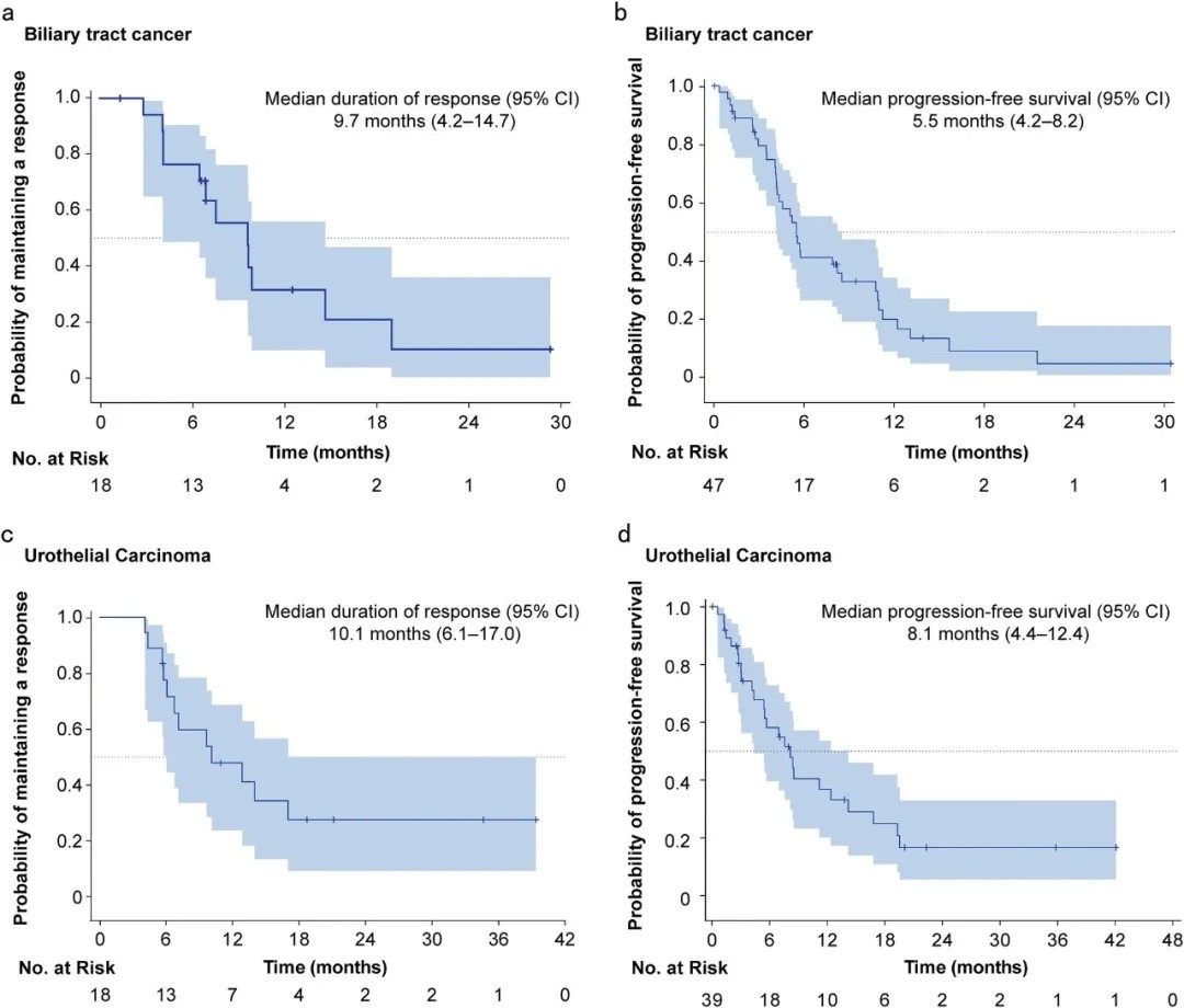 • 在非乳腺癌的实体瘤患者中,该药物同样显示出广泛的抗肿瘤活性。例如,在胆道癌、尿路上皮癌和妇科癌症患者中,中位无进展生存期分别为5.5个月、8.1个月和8.5个月。