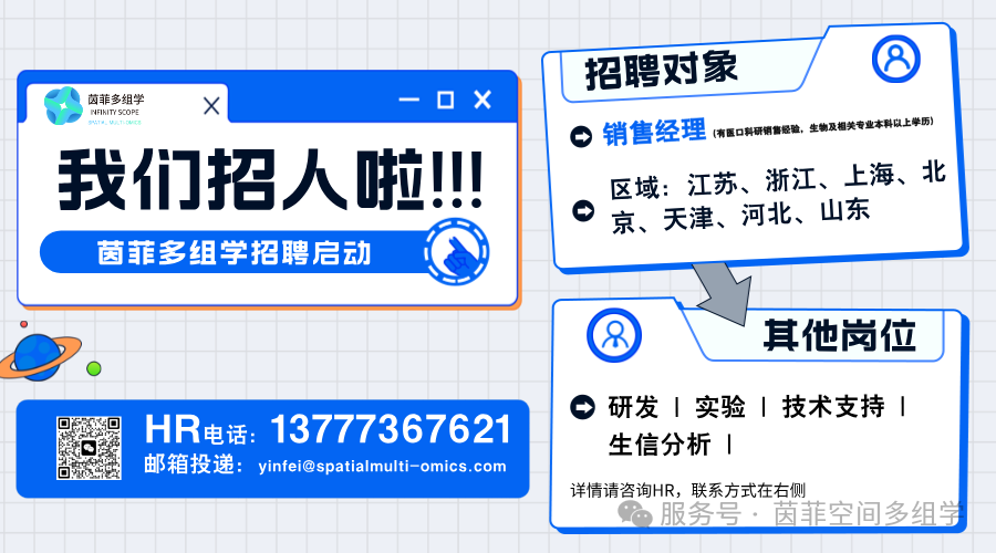 杭州茵菲多组学生物科技(简称“茵菲多组学”)有限公司是一家专注于空间多组学技术研发与应用的前沿生物高科技企业,致力于探索生命科学领域内的细胞及组织的空间异质性。我们整合了单细胞测序技术、靶向蛋白检测技术、空间多组学技术以及先进的生物信息学分析方法,通过高精度解析复杂生物样本中RNA和蛋白的表达及其在三维空间上的分布及位置差异,助力科研人员揭示生命现象的本质规律,推动精准医疗、药物研发及基础生物学研究的进步。公司的核心竞争力体现在对空间多组学数据的深度挖掘与解读能力上,以及持续创新和优化解决方案满足全球科研用户多元化的需求。