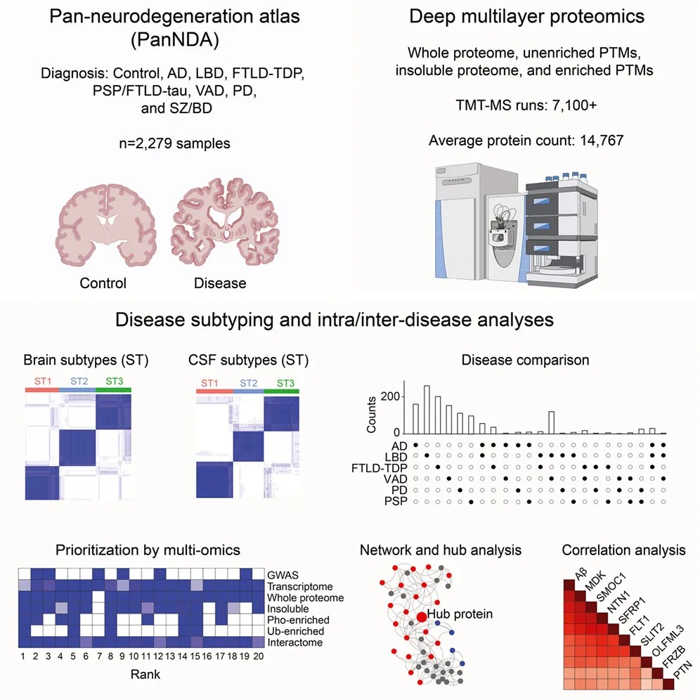 Cell重磅发布!首次系统绘制迄今为止最全面的“泛神经退行性疾病图谱”,蛋白质组学新突破揭示疾病亚型与共享机制