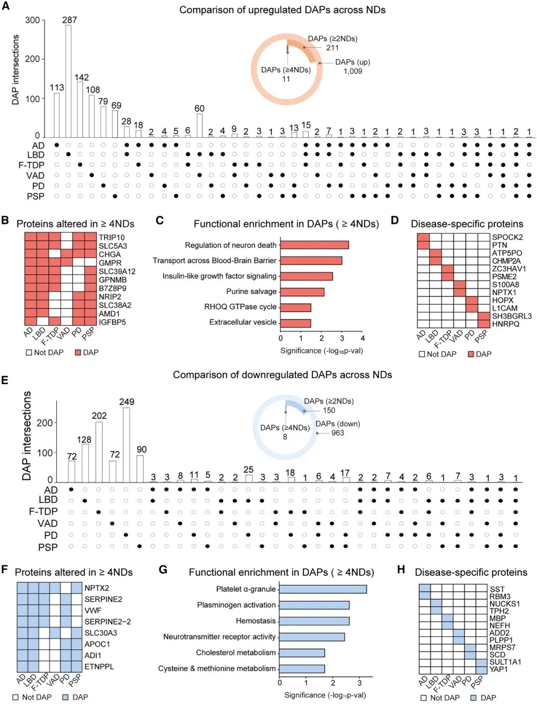 神经退行性疾病差异表达蛋白(DAPs)的比较分析