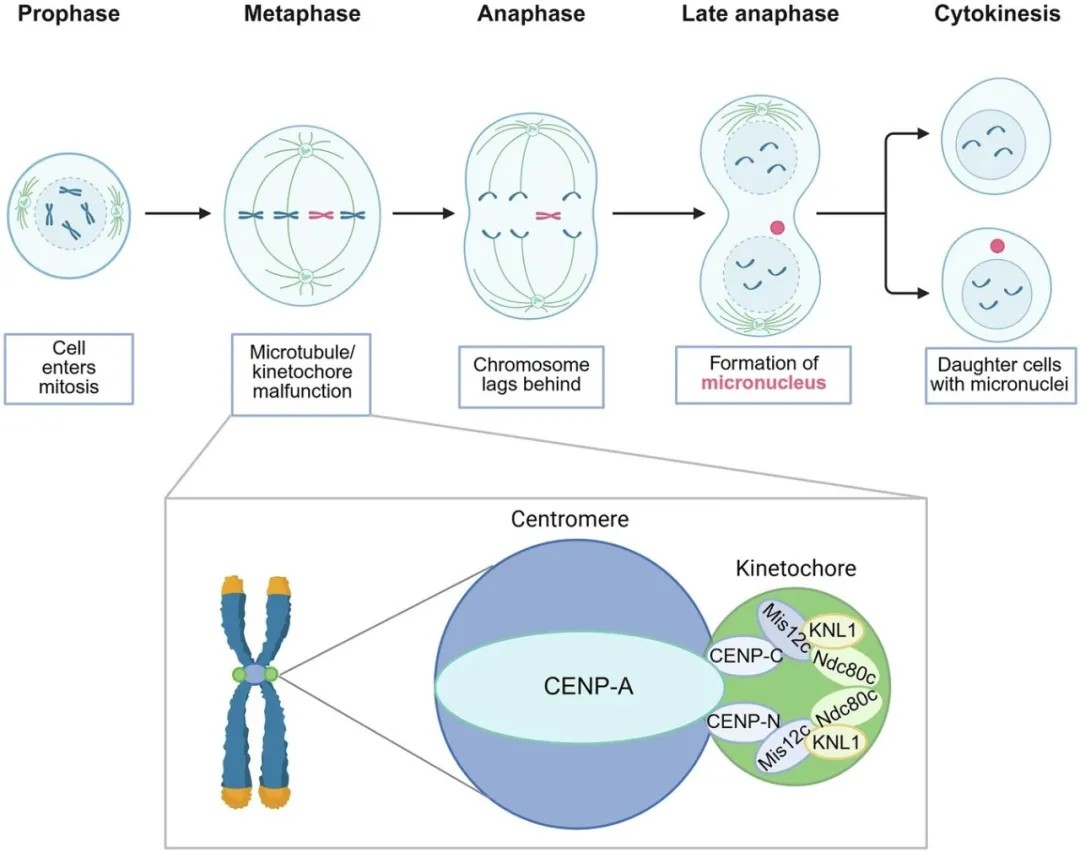 微核是细胞质中由核膜包裹着滞后染色体或染色体片段的小型核结构。传统观点认为,辐射、基因毒性药物等因素造成的DNA损伤或细胞分裂缺陷是导致微核形成的主要原因,其存在标志着细胞存在染色体不稳定性(CIN),而CIN是肿瘤细胞的普遍特征。