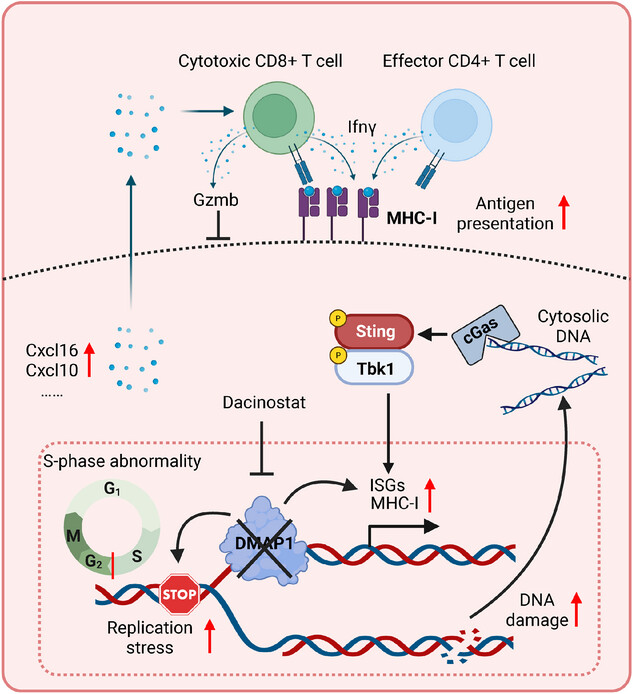 研究共同表明,非小细胞肺癌(NSCLC)细胞中 DMAP1 缺乏会引发 DNA 复制压力,并通过细胞内在的 I 型干扰素信号激活抗肿瘤 T 细胞免疫,从而揭示了此前未被认知的表观遗传 - 免疫轴,并凸显 DMAP1 为潜在的治疗弱点。