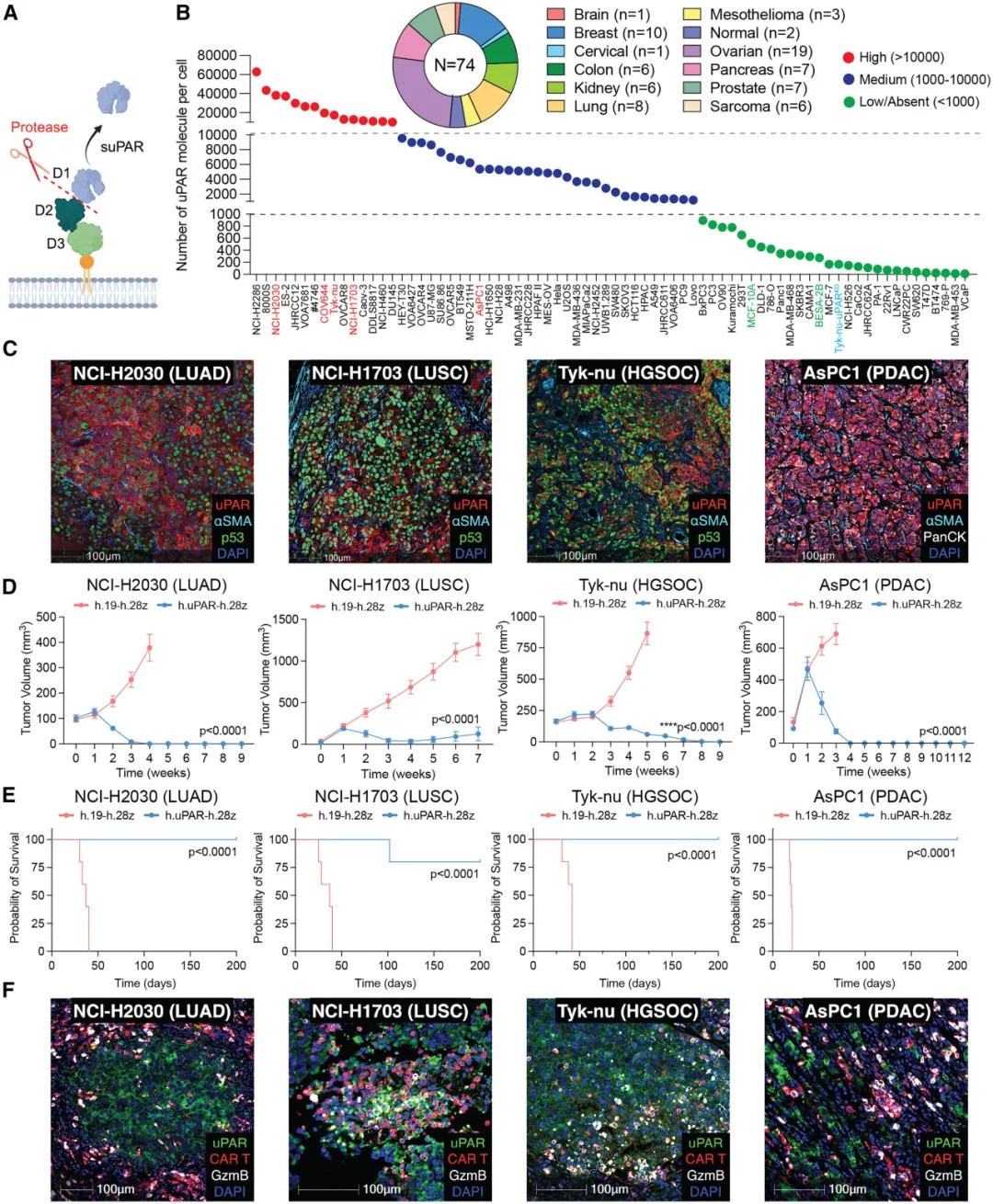 uPAR CAR-T细胞在多种癌症模型中展现出强大的抗肿瘤活性