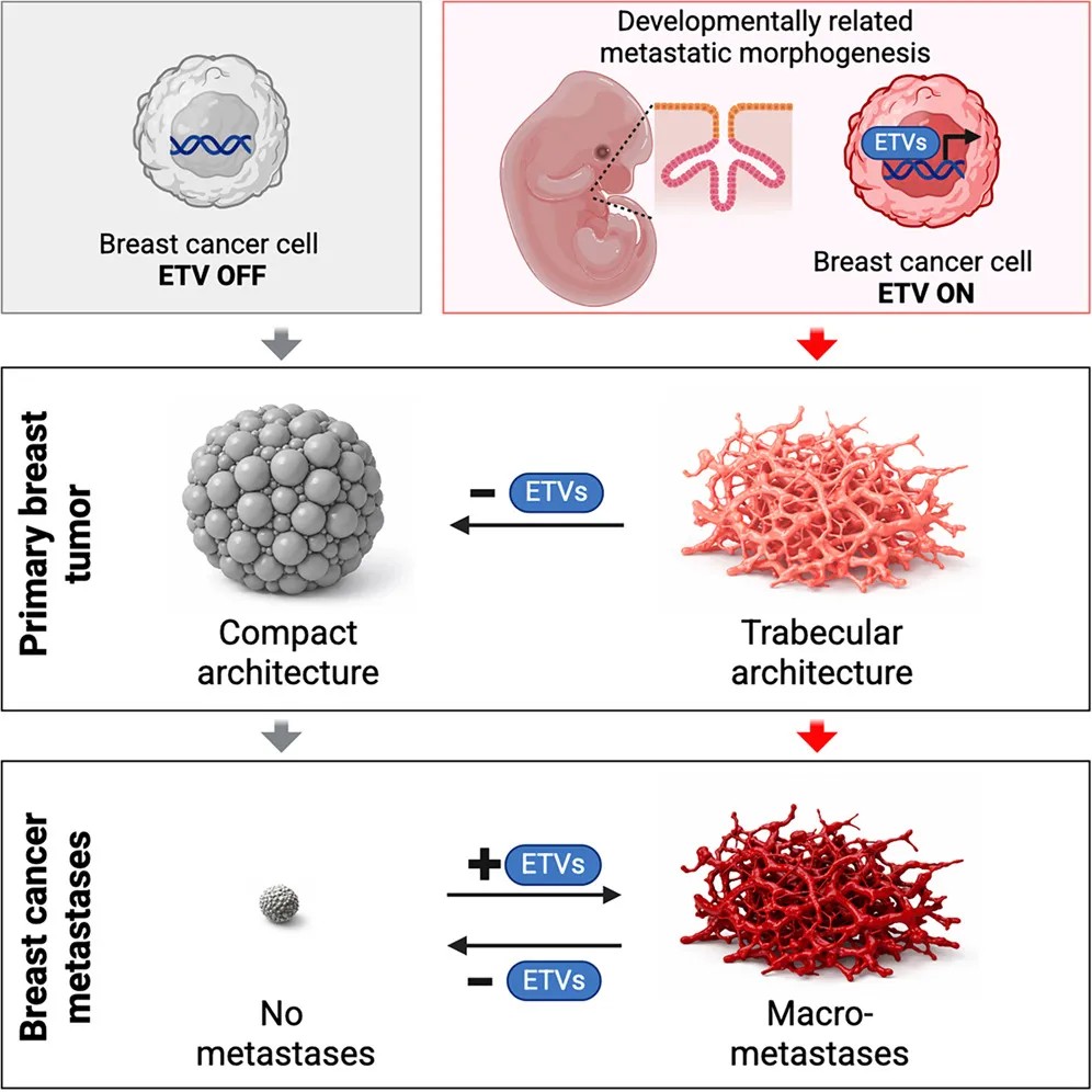 该研究从根本上改变了我们对癌症转移的认知:转移并非简单的细胞增殖,而是一个受严密遗传程序调控的、主动的器官样构建过程。它首次将转移性生长与一个明确的三维发育蓝图联系起来。该研究一方面为我们提供了预测哪些肿瘤更具攻击性的新工具;另一方面,揭示了转移过程的独特依赖性,例如对ETV因子和FGF信号的依赖,这为开发仅针对致命转移阶段、而不伤害正常组织或其他治疗阶段的新疗法开辟了道路。