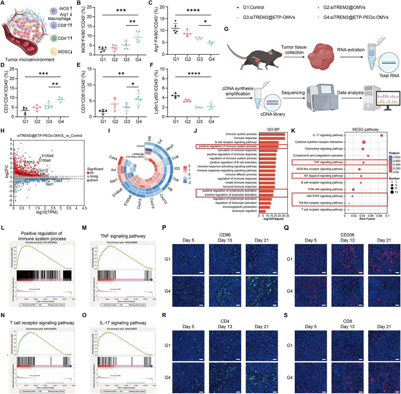 siTREM2@ETP-PEOz-OMVs 通过调节 TAM 表型并增强 T 细胞浸润,缓解了免疫抑制性肿瘤微环境