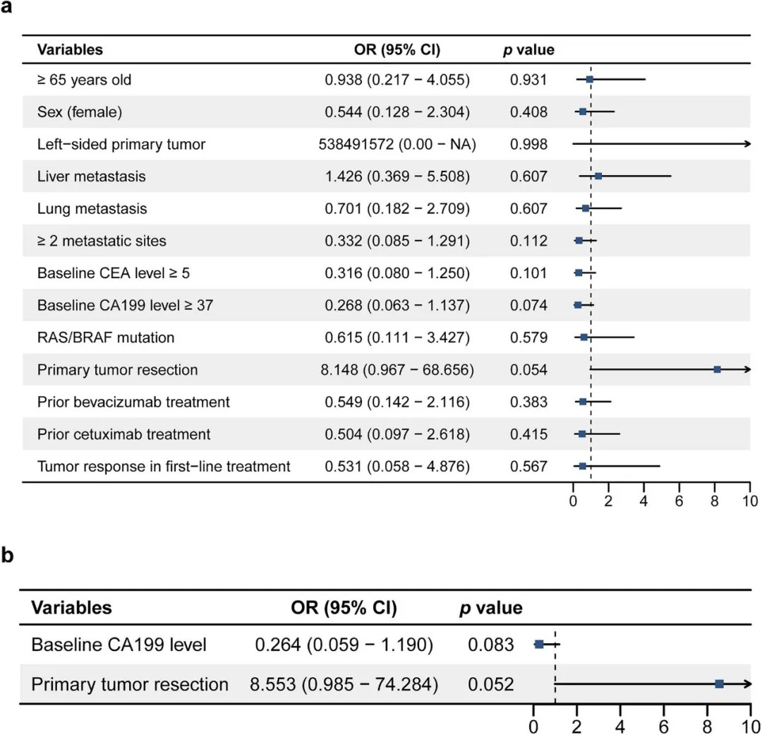亚组分析揭示了一个关键发现:曾接受过原发灶切除的患者,其中位总生存期(21.9个月 vs 16.2个月)和无进展生存期(8.9个月 vs 5.2个月)均显著优于未切除患者。 而RAS/BRAF突变状态、肿瘤原发部位等因素对生存无明显影响。